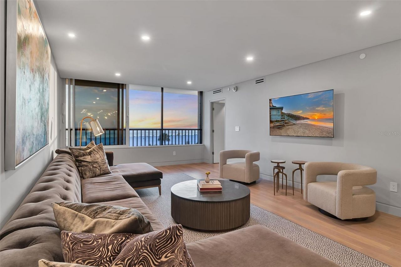 A rare and exceptional offering within Building F at Gulf & Bay Club on Siesta Key, Unit 403 presents a truly one-of-a-kind coastal retreat. Completely taken down to the studs and reimagined in 2023, this residence showcases a meticulous, high-end renovation where no detail was overlooked.From the moment you enter, you're welcomed by a light-filled, open-concept design with sweeping direct Gulf views that immediately set the tone. The chef's kitchen is the centerpiece of the home, anchored by a stunning 12-foot oversized island with seating for six. Featuring eco-friendly PaperStone countertops and backsplash, a full suite of premium Thermador appliances, and seamless custom finishes, the space is as functional as it is striking-all complemented by breathtaking water views as you cook and entertain.Offered turnkey furnished, the interiors are thoughtfully curated with pieces from Arhaus, Restoration Hardware, and other luxury brands, creating a cohesive and sophisticated aesthetic. The open layout flows effortlessly from kitchen to dining to living, enhanced by custom built-ins that provide both style and smart storage, including a paneled wine refrigerator.Wake up to the Gulf from your private primary suite, a serene retreat designed for both comfort and elegance. This space features a dedicated vanity area, custom walk-in closet, and a beautifully appointed en-suite bath, offering a spa-like experience within your own home.Additional highlights include engineered hardwood flooring throughout, hurricane-impact windows and sliders, solid-core doors, and extensive custom storage solutions-all contributing to the home's elevated design and livability.This two-bedroom, two-bath residence is set within the highly sought-after Gulf & Bay Club, where residents enjoy an unmatched, resort-style lifestyle across 32 acres of lush, manicured grounds. Indulge in 800 feet of private, powdery white sand beach, three heated pools, tennis and pickleball courts, a state-of-the-art fitness center with yoga studio and saunas, and multiple clubhouses featuring lounges, billiards, and social spaces. Additional amenities include barbecue and picnic areas, freshwater lakes, and EV charging stations.Ideally located just moments from the dining, shopping, and vibrant energy of Siesta Key Village-including the iconic Sunday Drum Circle-this residence offers the perfect blend of privacy, luxury, and convenience.Unit 403 is more than a home-it's a rare opportunity to experience the very best of Gulf-front living on Siesta Key.