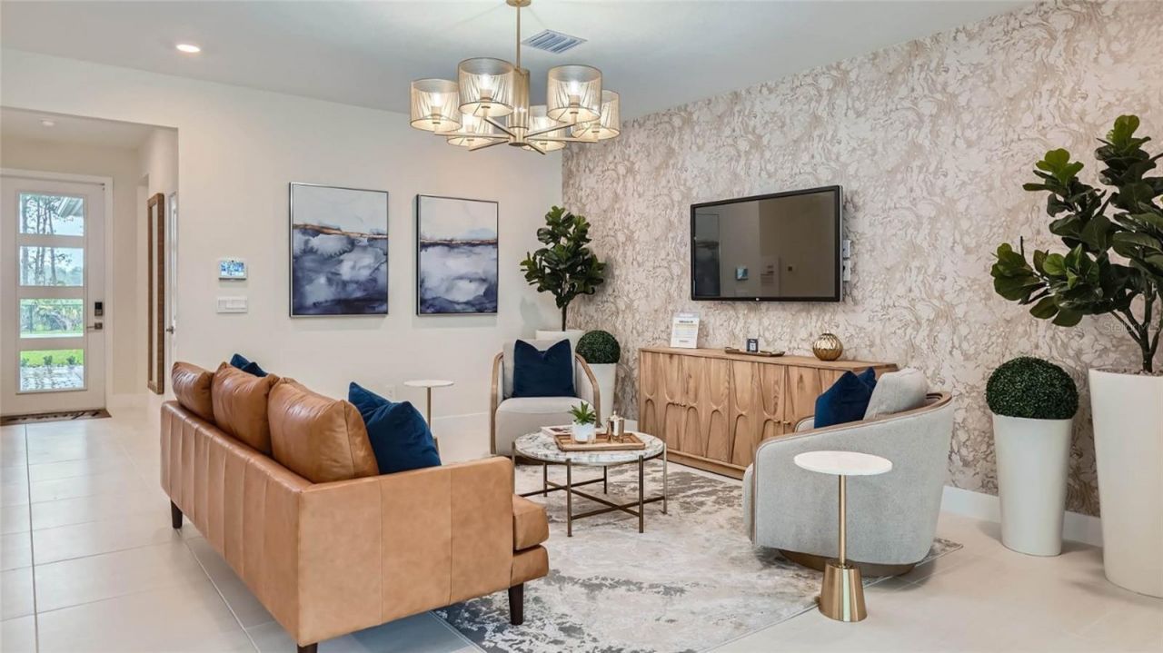 Under Construction. The Avon is a 3 bedroom, 2 bathroom home offering 1,641 square feet of comfortable living space. Built with durable concrete block construction, the Avon also includes a two-car garage and a covered lanai for relaxing outdoor living. The spacious, open-concept design allows the kitchen to overlook the dining and great room, with views to the covered lanai. Ample windows and sliding glass doors bring in natural light. The well-appointed kitchen features quartz countertops, stainless-steel appliances, an oversized undermount sink, and an island with bar seating. The Owner's Suite, located for privacy at the back of the home, includes a luxurious ensuite bathroom with double undermount sinks, quartz countertops, and a large walk-in closet. Two additional guest bedrooms and a full bath are located at the front of the home. Pictures, photographs, colors, features, and sizes are for illustration purposes only and will vary from the homes as built. Home and community information including pricing, included features, terms, availability and amenities are subject to change and prior sale at any time without notice or obligation. CRC057592.